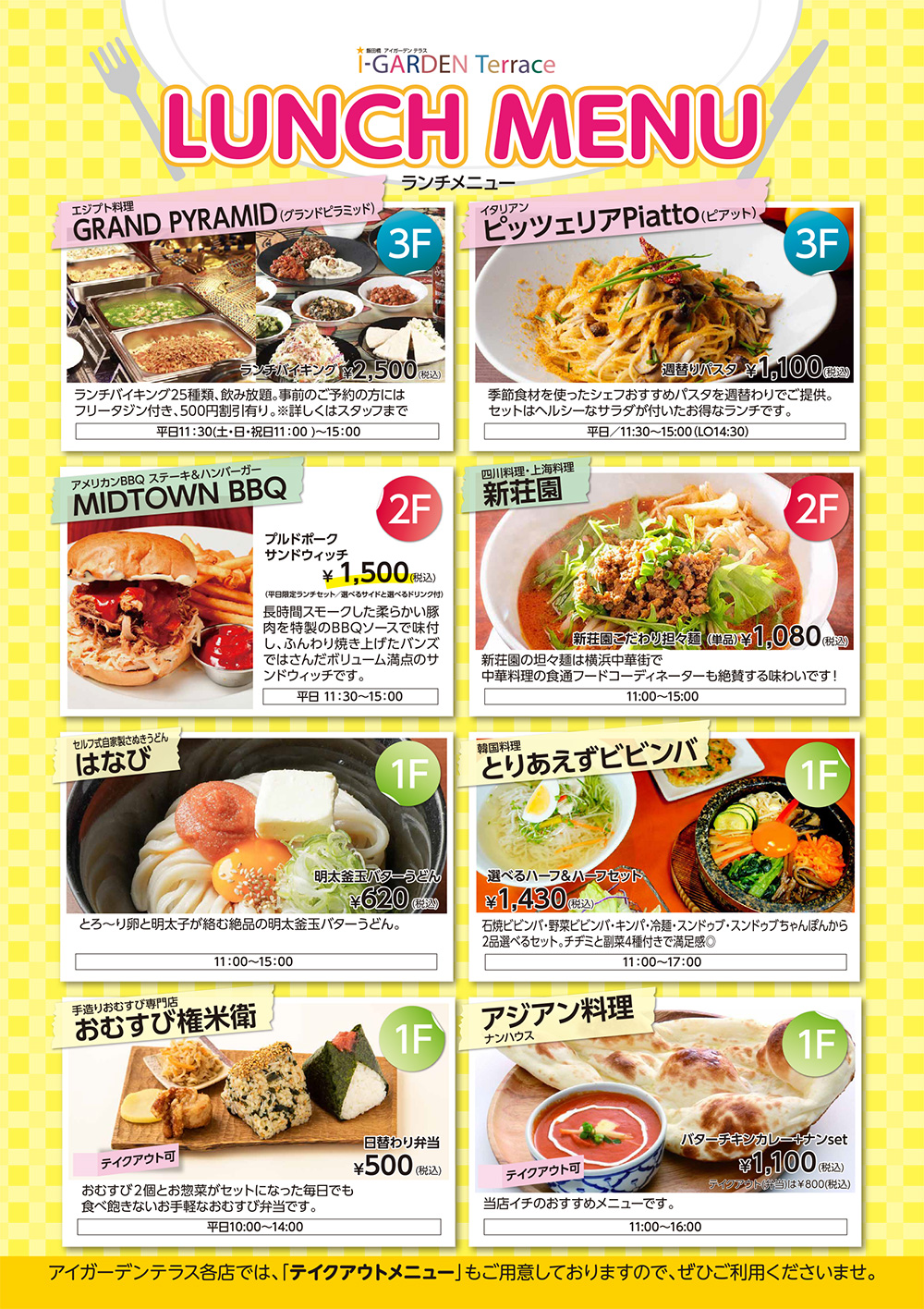 テイクアウト商品も豊富にご用意。